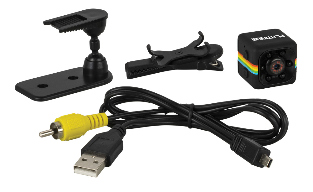 Minikamera - príslušenstvo: montážna svorka, kábel USB, držiak kamery, návod na použitie