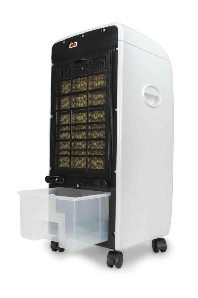 Mobilný ochladzovač zabezpečuje príjemnú klímu v miestnosti aj počas tropických letných dní, zabezpečuje priedušnosť a ochladzuje vzduch. Vyfukovaný vzduch sa zvlhčuje, ochladzuje studenou vodou a ionizuje. Mobilný ochladzovač vzduchu je vhodný do miestností, kde nie je možné alebo vhodné inštalovať bežnú klimatizáciu.