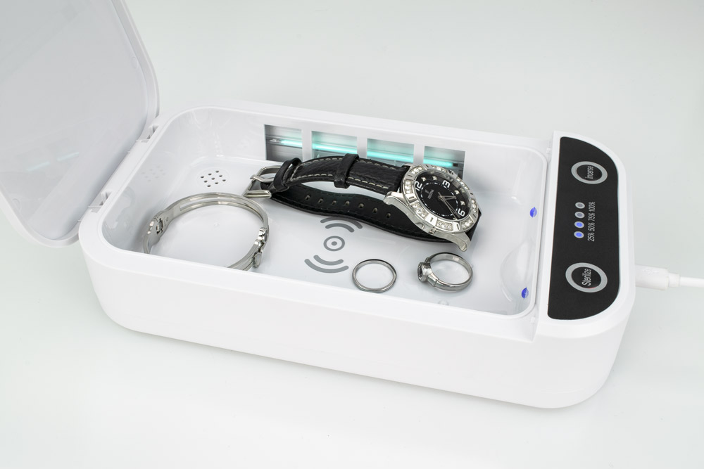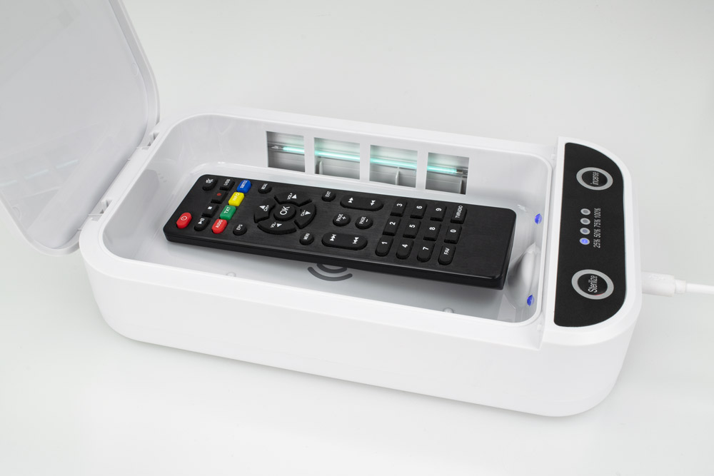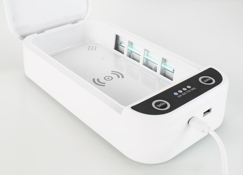 Multifukčný UV Sterilizačný QuickClean box na dezinfekciu rúšok, mobilných telefónov a iných predmetov.