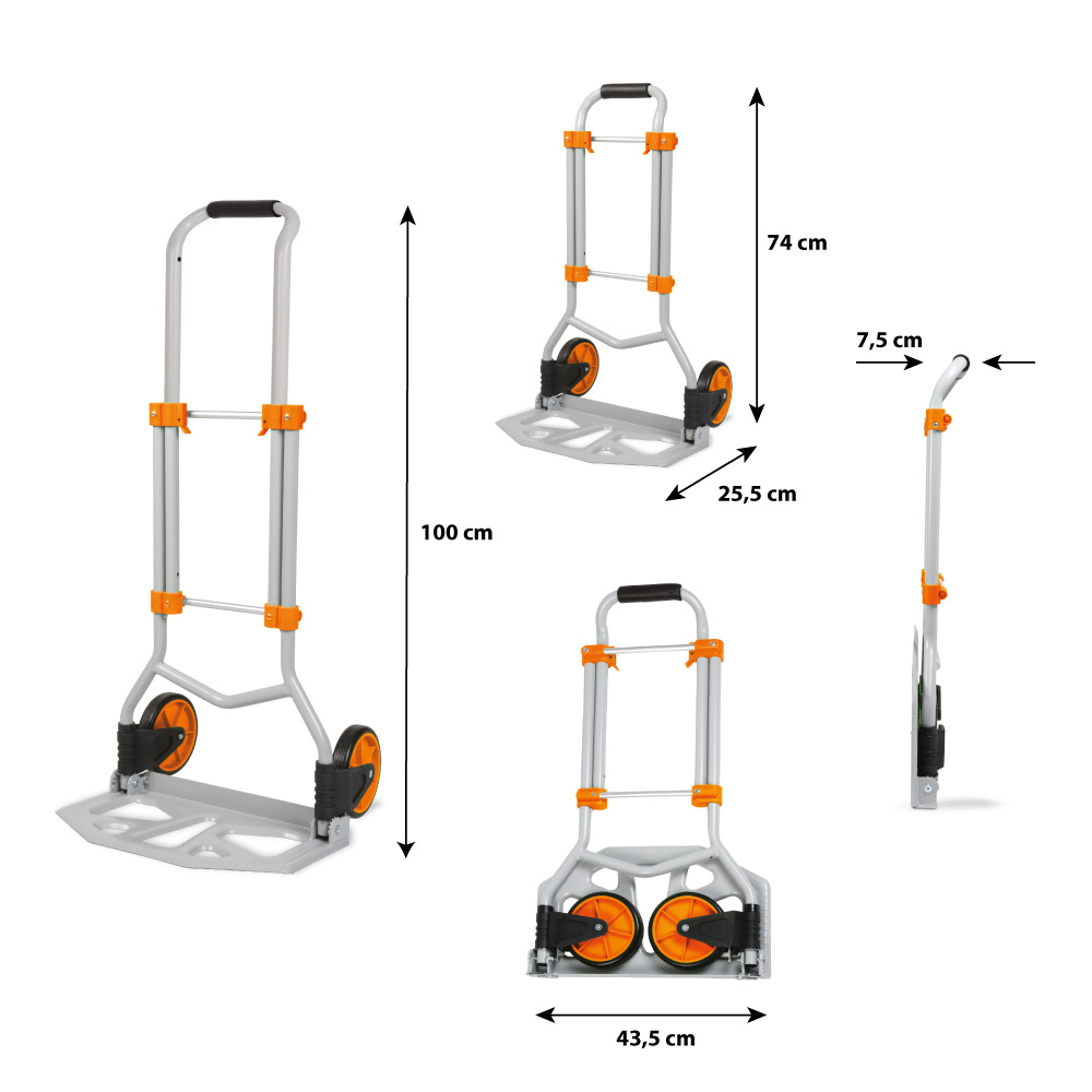 Univerzálna skladacia rudla je určená na ručnú manipuláciu s ťažkými predmetmi v domácnostiach, dielňach a kanceláriách. Skladacia rudla má teleskopickú rukoväť s bezpečnostným zámkom.