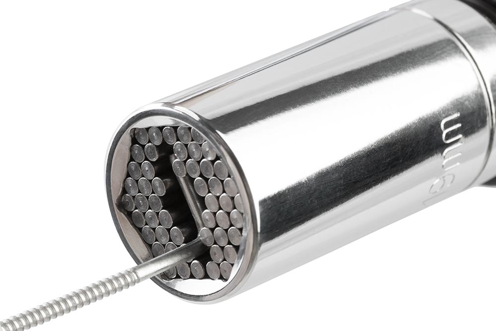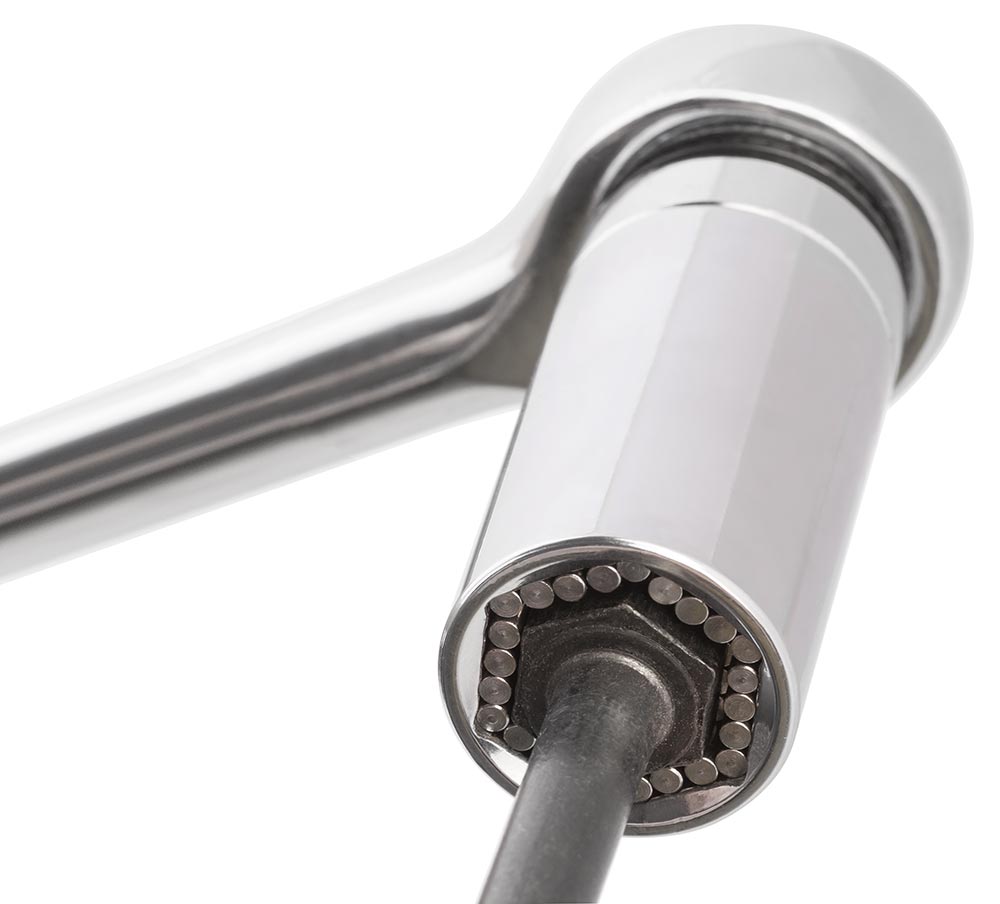 Univerzálna hlavica nahrádza štvorhranné alebo viachranné zásuvky. Nie je potrebné kupovať a skladovať sadu zásuviek! Univerzálnu zásuvku možno použiť aj na atypické tvary (skoby, krídlové matice, oká).