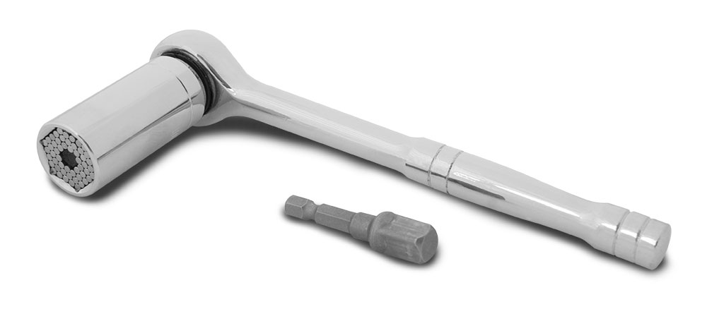 Univerzálna hlavica je vhodná na montáž skrutiek so šesťhrannou hlavou od 7 do 19 mm. Univerzálnou hlavicou možno tiež uťahovať alebo povoľovať skrutky so štvorcovou hlavou, skrutky s osemhrannou hlavou, krídlové matice, skrutky s očkom a háčikom atď. Neoceniteľná je aj možnosť povoľovať skrutky, ventily a iné zariadenia s poškodeným povrchom, ktoré už nie je možné povoliť štandardnými kľúčmi. Zásuvku možno nasadiť na 1/2 palcovú račňu alebo prostredníctvom redukcie na aku skrutkovač.