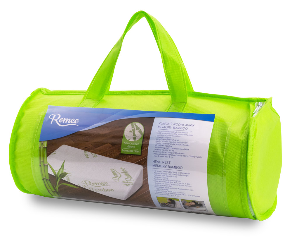 Pozn: klinový podhlavník MEMORY BAMBO je vákuovo balený, preto ho po rozbalení nechajte niekoľko hodín na rovnej ploche nasať vzduch.