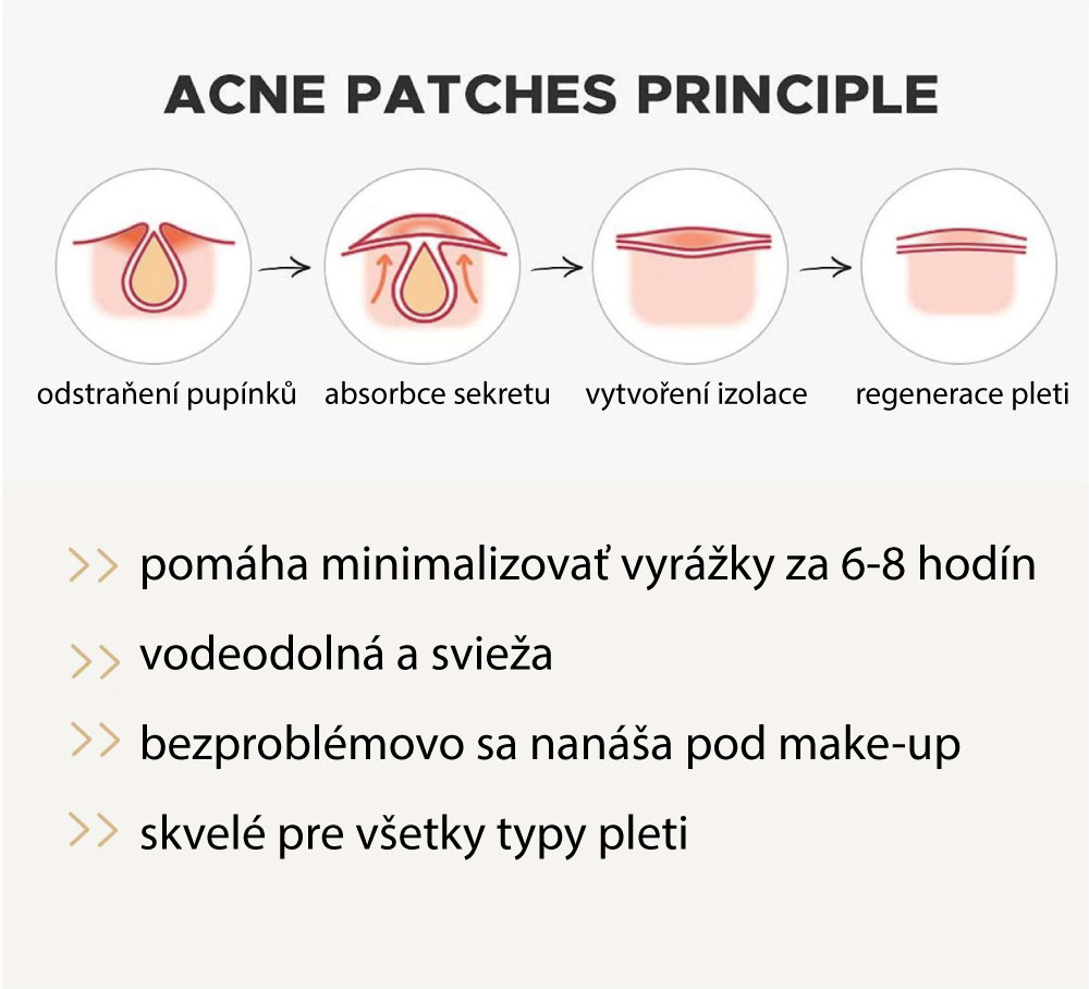 Rýchle a jednoduché riešenie pri boji proti nepríjemným kožným vyrážkam. Náplasť na akné efektívne bojuje proti akné, ale zároveň pôsobí preventívne proti vzniku nových vyrážok.